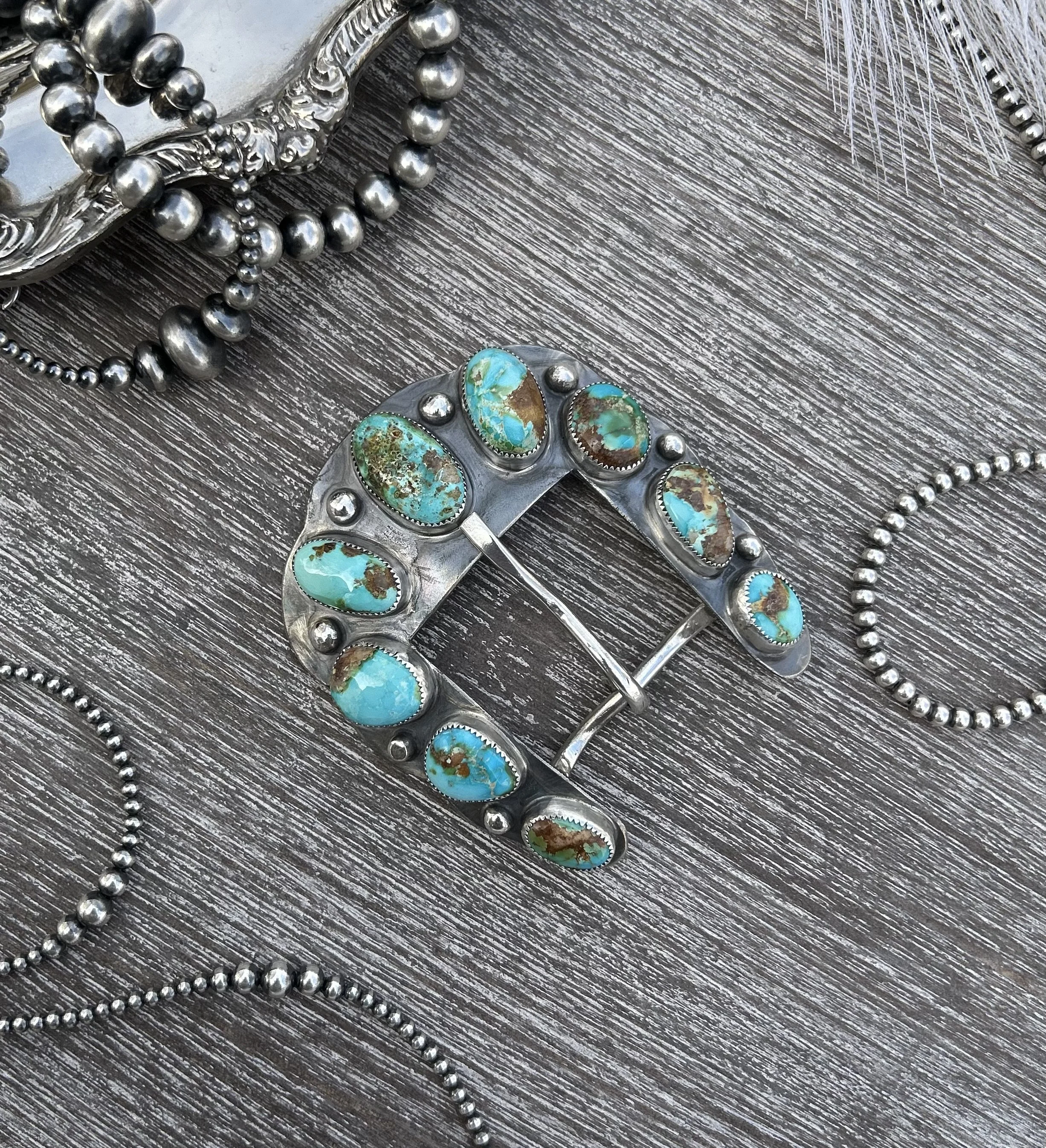 Shop › The Ellie Image 1 of 1 The Ellie $425.00 Sold Out Nickel silver buckle featuring Sonoran Mountain Turquoise with sterling silver embellishments. Fits 1 ½” belt. Sold Out Added! Nickel silver buckle featuring Sonoran Mountain Turquoise with sterling silver embellishments. Fits 1 ½” belt.